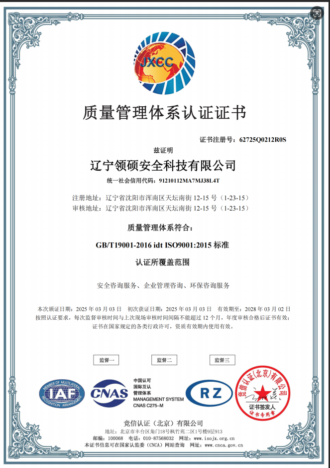 遼寧領(lǐng)碩安全科技有限公司位于遼寧省沈陽市渾南區(qū)天壇南街12-15號(hào),注冊資金300萬。主要經(jīng)營范圍為遼寧省范圍內(nèi)的安全環(huán)保咨詢,生產(chǎn)安全事故應(yīng)急預(yù)案技術(shù)服務(wù)、企業(yè)雙重預(yù)防機(jī)制建立、履職能力評估、企業(yè)科研項(xiàng)目安全部分服務(wù)等的技術(shù)服務(wù)機(jī)構(gòu)。現(xiàn)有員工12人,其中包括5名遼寧省級(jí)安全生產(chǎn)專家。成立于2022年4月18日,在盤錦市成立至今已經(jīng)為30余家企業(yè)提供了安全環(huán)保技術(shù)咨詢。 業(yè)務(wù)范圍包括:技術(shù)服務(wù)、技術(shù)開發(fā)、技術(shù)咨詢、技術(shù)交流、技術(shù)轉(zhuǎn)讓、技術(shù)推廣,安全咨詢服務(wù),環(huán)保咨詢服務(wù),標(biāo)準(zhǔn)化服務(wù),企業(yè)管理咨詢,科技中介服務(wù),工程管理服務(wù),特種作業(yè)...查看更多